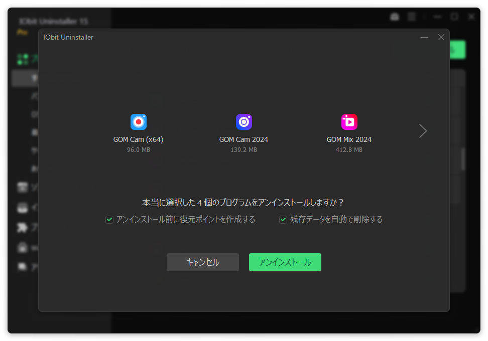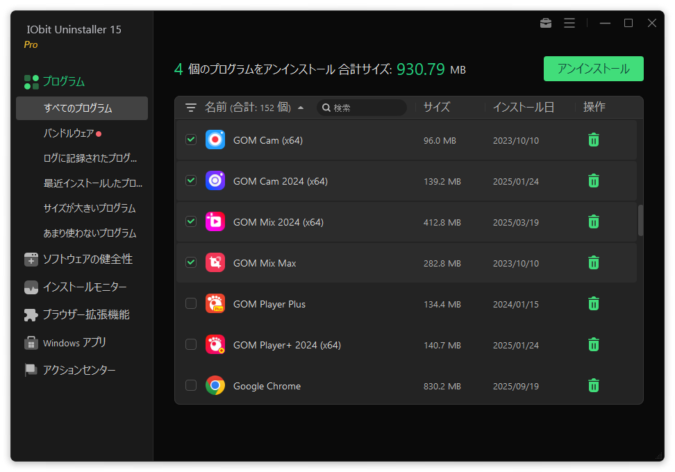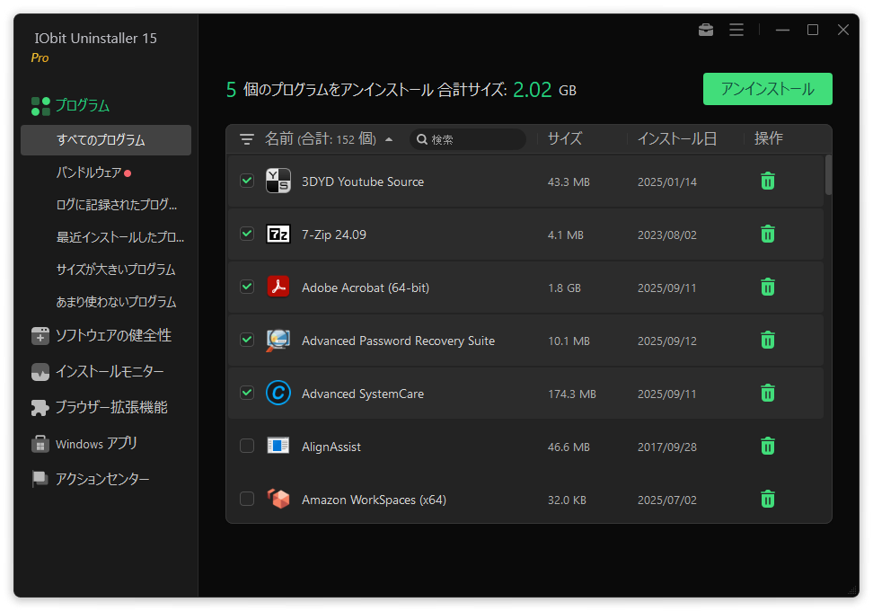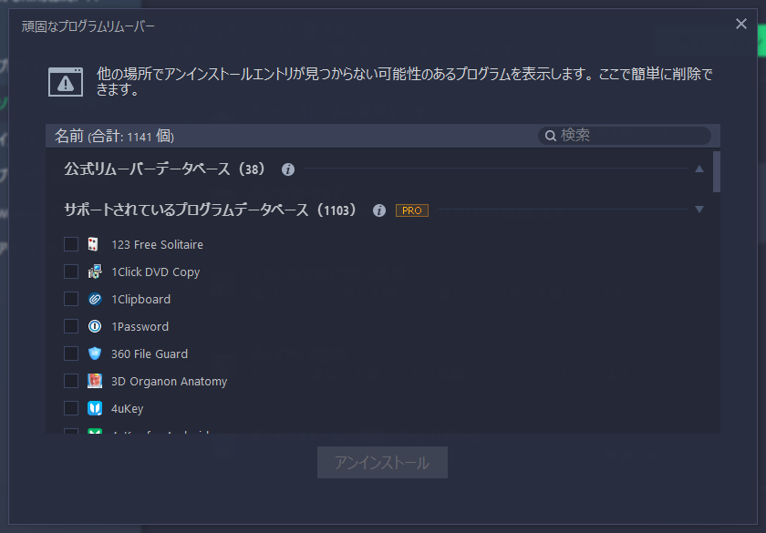 削除したいプログラムを選択して一括でアンインストールすることができます。