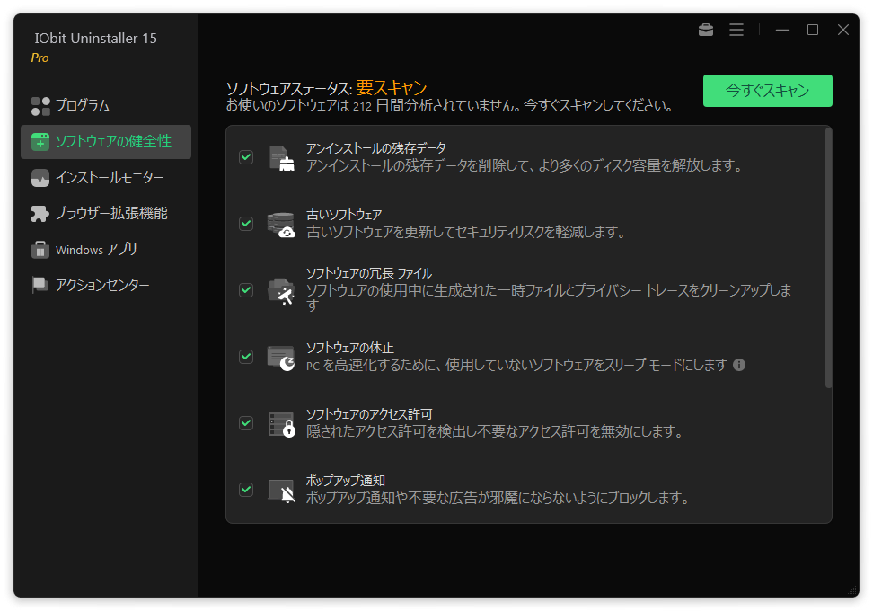 - ・あまり使わないプログラム:数カ月使用していないプログラムを表示します。