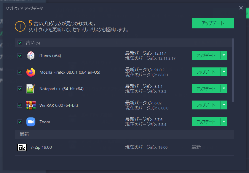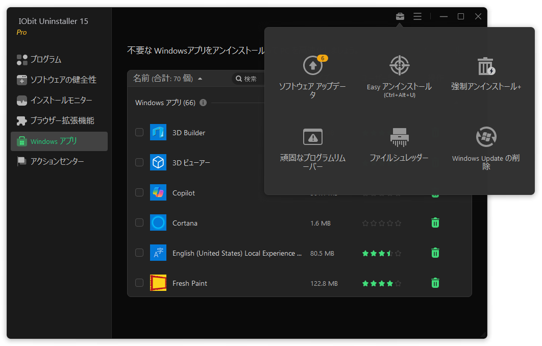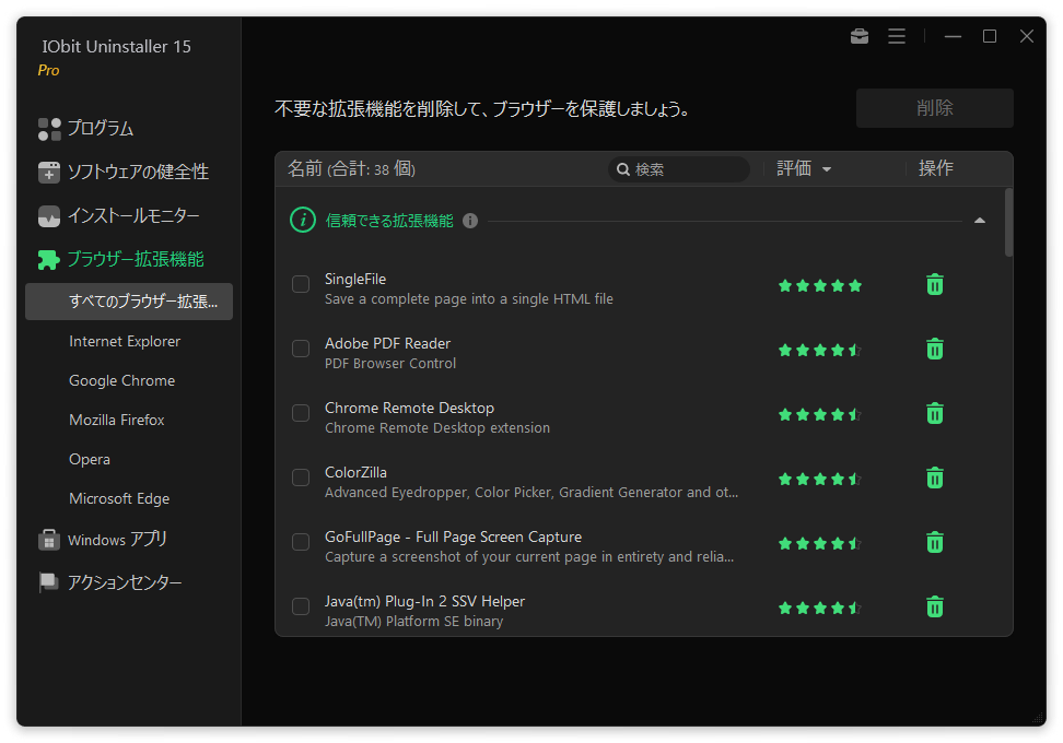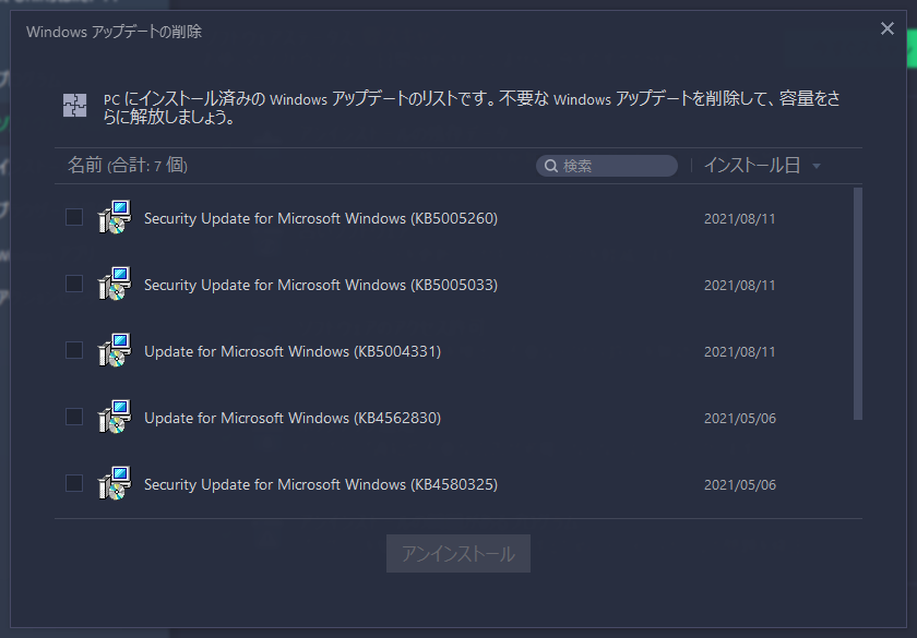アップデート」の項目ごとに表示して効率的に削除することができます。