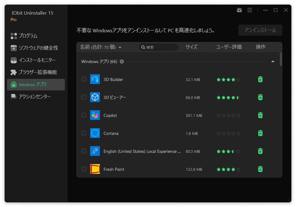 - ・サイズの大きいプログラム:インストールされている大きなプログラムを表示します。